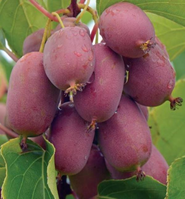 Саженцы актинидии Bingo рекомендуются для выращивания как на плантациях, так и на приусадебных участках. Лиана сильнорослая, достигает 8 метров. Начинает плодоносить со 2-3 года посадки. Средний размер плода 3 см в длину и 2,5 см в ширину, а вес 8-14 грамм. Для опыления и оплодотворения необходим вблизи мужской экземпляр того же вида. Созревают ягоды в начале сентября — октябре. Плоды ароматные, очень вкусные, отличаются ананасовым привкусом. Высаживать саженцы актинидии Bingo необходимо на защищенных от ветров участках, не менее в 1,5 метрах от заборов и в 2 метрах от домов.