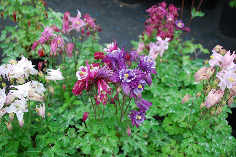 - фиолетовые. Из семян аквилегии вырастают компактные кусты диаметром около 50 см. Это растение можно использовать для декорирования цветников, оформления водоемов и для выращивания цветов для букетов. Для посадки рассады аквилегии подходят затененные участки легкой влажной почвы. Цветение происходит в июне-июле на второй год после высаживания.