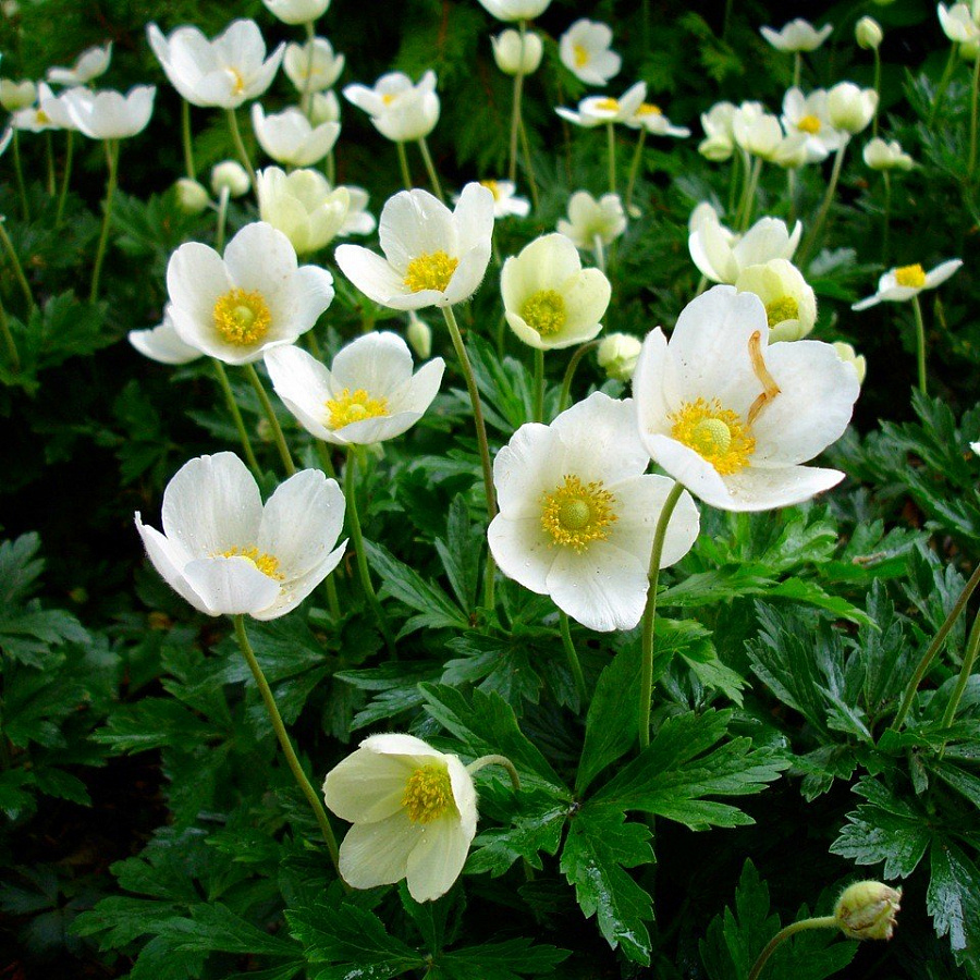 Рассада анемоны лесной бывает двух видов: махровая и крупноцветковая. Главное отличие заключается в размере цветков – у второй они крупнее. Высаживают рассаду анемоны лесной на полузатененный участок во влажный грунт. Но на самом деле растение не такое прихотливое и будет расти даже на солнце. Цветок хорошо переносит засуху. Размножается семенами анемона лесная и при помощи «деток». Растение зацветает в конце мая. Тогда на веточках появляются одиночные цветочки. Они белые, но имеют небольшой зеленоватый оттенок. Цветение продолжается до середины-конца июня. Листочки растения идут от корней. Они не отмирают до первых заморозков.
