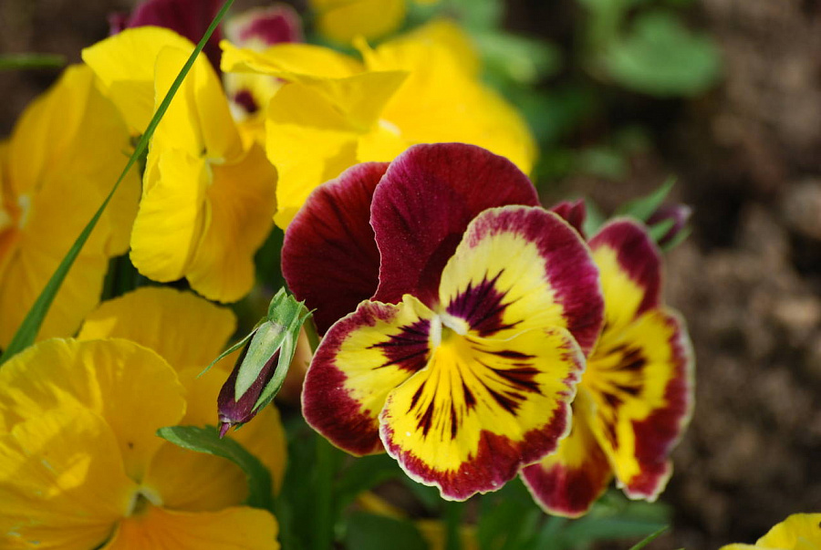 Анютины глазки еллоу браун биколор - это удивительное растение с желто-коричневыми цветками, которое поражает своей красотой и изяществом. Его стебель достигает высоты до 15 см, что делает его идеальным выбором для групповых посадок в саду или на клумбе. Листья этого растения имеют интересную форму и яркий оттенок, что придает ему особый шарм.
