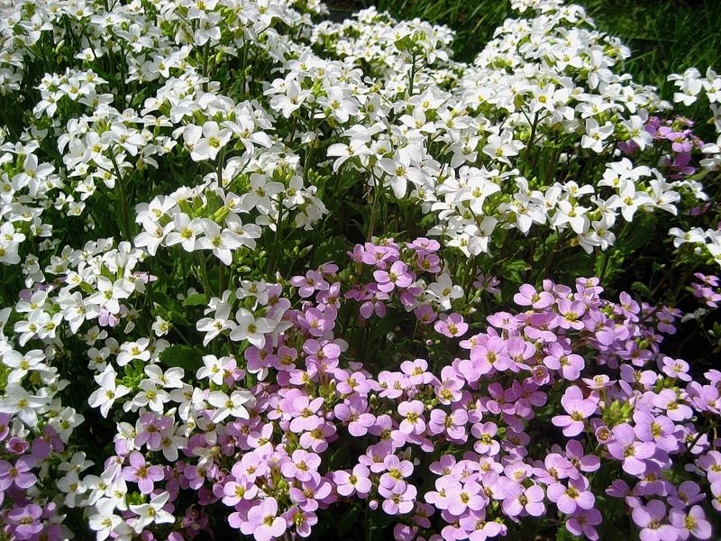 Семена арабиса смесь окрасок подарят возможность украсить садовый ландшафт пушистым цветущим ковром. Это невысокое растение незаменимо при оформлении каменистых горок, бордюров и высоких клумб. Микс позволяет вырастить кусты с белыми и розовыми цветами.