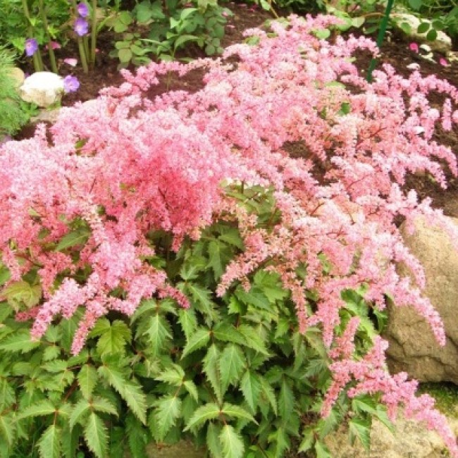 Окраска цветка : розовые соцветия, в ажурных, слегка поникающих метелках