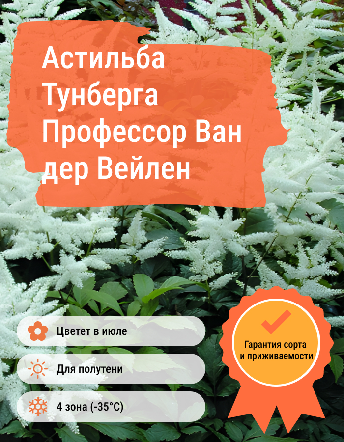 Астильба Тунберга Профессор ван дер Вейлен - это изысканное растение, которое поразит вас своей красотой и изяществом. Ее стебли достигают высоты до 150 см, а диаметр цветков может достигать 100 см. Цветки желтовато-белые, бежевые, создают неповторимый вид, который украсит ваш сад или огород. Листья астильбы имеют светло-зеленую окраску и необычную форму, что делает растение еще более привлекательным.