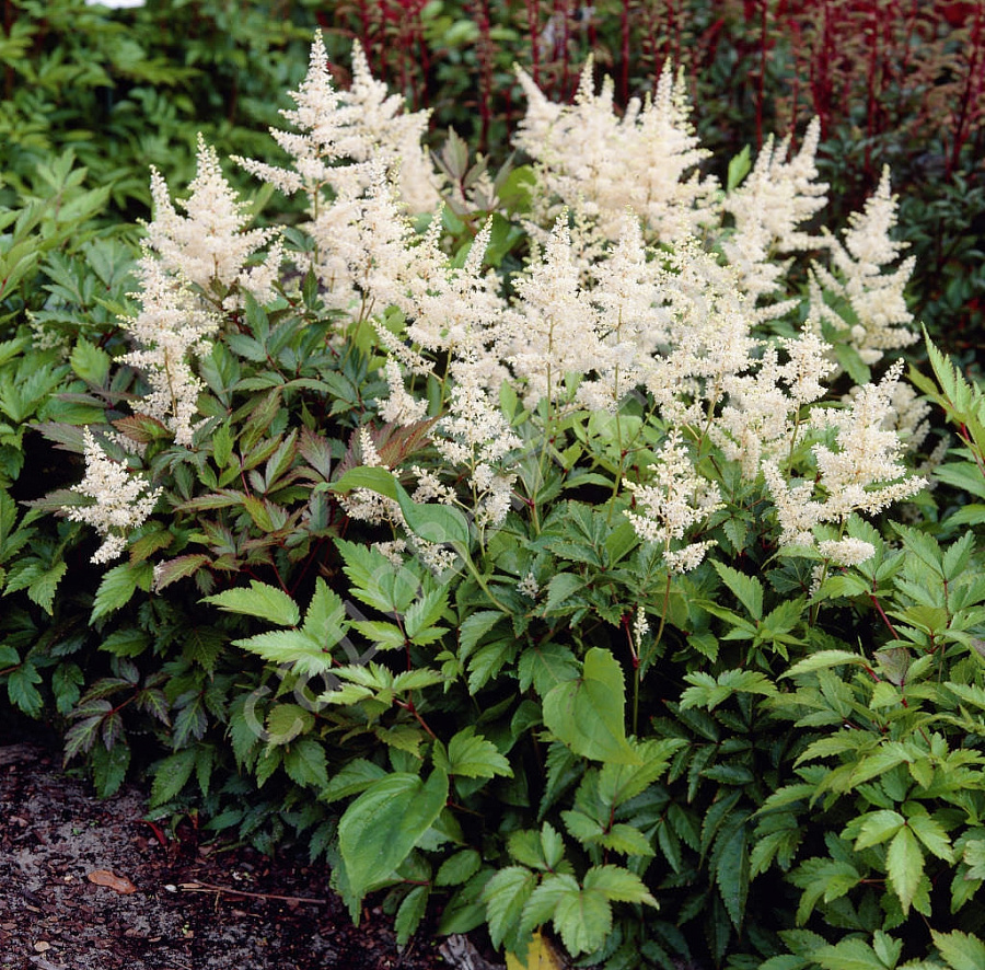 Рассада астильбы японской Глэдстоун (Gladstone) славится своей стойкостью и неприхотливостью. Она обладает хорошим иммунитетом и устойчива к болезням. Семена хорошо всходят во влажной почве у водоёмов в хорошо освещённых местах. В июле появляются нежные метёлки-соцветия кремово-белого цвета и продолжают цвести 20-25 дней. В высоту растение достигает 80 см. Эффектно смотрится сочетание Gladstone с папоротниками, первоцветами и декоративными хвойными растениями. Не переносит засухи. Куст сохраняет нарядность до и после цветения благодаря форме и яркому окрасу листьев.