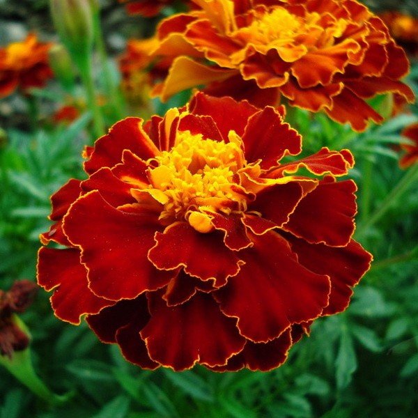 Семена бархатцев отклоненных Бонита (Tagetes patula nana) рекомендовано сеять в апреле. Тогда уже вначале лета они станут полноценным цветущим растением. Которое будет цвести непрерывно по сентябрь. Этот сорт бархатцев устойчив к ветрам благодаря крепким побегам и плотной шапке. Компактный куст не разрастается во все стороны. Идеален для высадки в небольшие вазоны и уличные декоративные контейнеры. Растение неприхотливо к составу почвы, любит свет. Цветы Бониты крупные и очень махровые. Образуют грациозную смесь желтых, бордовых, коричневых тонов. Благодаря полному сочетанию оттенков между собой, кусты можно формировать на отдельной клумбе в качестве самостоятельной композиции.