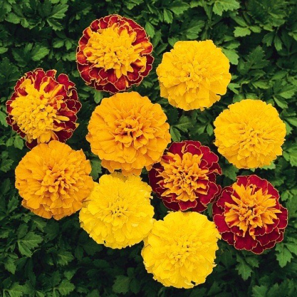 Бархатцы отклоненные махровые бой смесь - это удивительное растение, которое поразит вас своей красотой и изяществом. Его стебли высотой до 20 см украшены гвоздиковидными цветками диаметром до 45 см, создавая неповторимый вид в вашем саду. Листья этого растения имеют форму, напоминающую бархат, что добавляет ему особую изысканность.