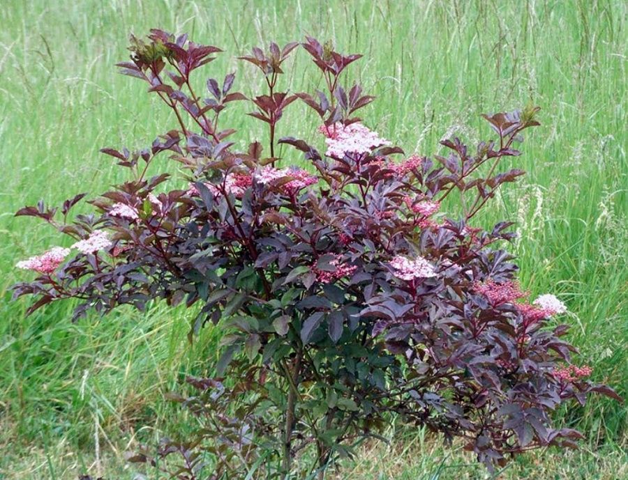 Саженцы бузины черной Зандерклауд (Thundercloud) вырастают в красивый кустарник очень быстро. Крупномеры бывают до четырех метров с пышной кроной в форме веера. Листва густая.