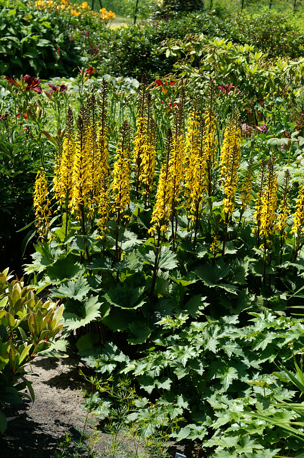Этот вид бузульника отличается высотой 50-60 см, что делает его идеальным для групповых посадок. Он предпочитает влагоемкие почвы и тень, поэтому выберите для него укромное место в саду. Бузульник узкоголовчатый Bottle Rocket не требует сложного ухода: достаточно регулярного полива и удобрений.