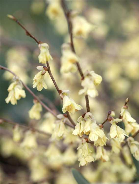 Саженцы Корилопсиса малоцветкового (Corylopsis pauciflora) – карликового густоветвистого кустарник, с тонкими веточками, благодаря чему выглядит декоративно. Листья, пока молодые имеют пурпунрый оттенок, а вот позже становятся зелеными. А вот цветы появляются рано (в начале весны) и представлены в виде колокольчиков желтовато-кремового цвета, которые опущены вниз.