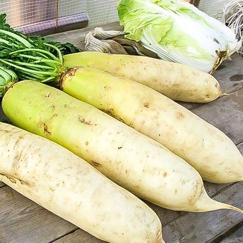 Семена дайкона "Русский размер F1" —  это самый ранний сорт, который дает большой урожай крупных корнеплодов. Высевают их в июле. Уход за сортом семян дайкона "Русский размер F1" заключается в регулярном поливе, прополке и рыхлении почвы. Собирают корнеплоды через 45 дней после появления всходов. Урожай отличается высокими товарными качествами. Длина корнеплодов достигает до 60 см, диаметр до 12 см. Они имеют цилиндрическую форму, к кончику слегка зауженные. Кожица тонкая, белого цвета, гладкая. Мякоть белоснежная, сочная, великолепного вкуса. Корнеплоды не теряют сочность при длительном хранении.