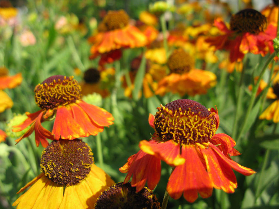Рассада Гелениума гибридного Mardi Gras (Марди Грасс) хорошо чувствует себя в достаточно плотных посадках вместе с осенними астрами. Гелениум гибридный Mardi Gras (Марди Грасс): – многолетнее растение; - растет прямостоячими кустами на сильных стеблях; - взрослое растение достигает высоты 90 см и диаметра 40 см; - цветет, начиная с августа, обильно золотисто-желтыми с коричневым центром крупными цветами; - очень хорошо подходит для срезания; - растение не переносит засушливую погоду, поэтому требует хорошего полива в жару. При этом неприхотлив к подкармливанию — удобрять цветок необходимо всего 2-3 раза за сезон. - стареет через 3-4 года и требует пересадки.