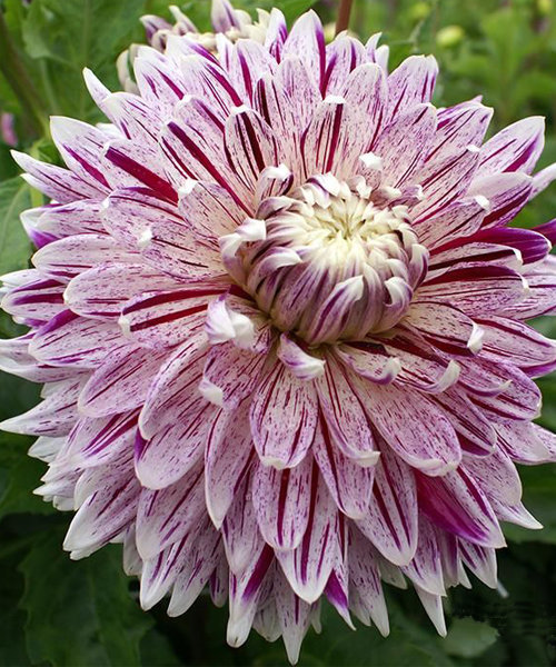 Окраска цветка : крупные белые цветки с сиреневыми штрихами