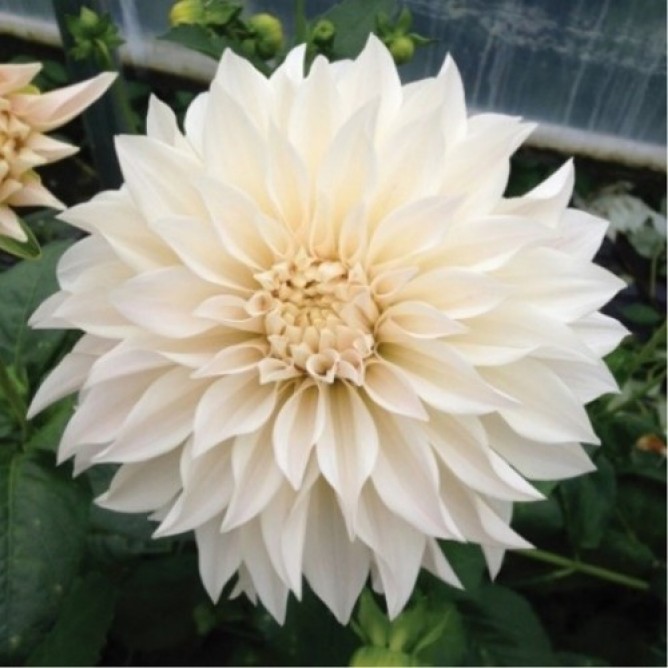 Георгина декоративная Big Heilstoun - это великолепное растение с чисто-белыми цветками и кремово-желтой серединкой, которое поражает своей изящностью и красотой. Ее стебель прочный и прямой, достигая высоты до 100 см, что делает ее идеальным украшением для вашего сада или огорода. Листья георгины декоративной Big Heilstoun имеют интересную форму и насыщенный зеленый цвет, что придает растению особый шарм.