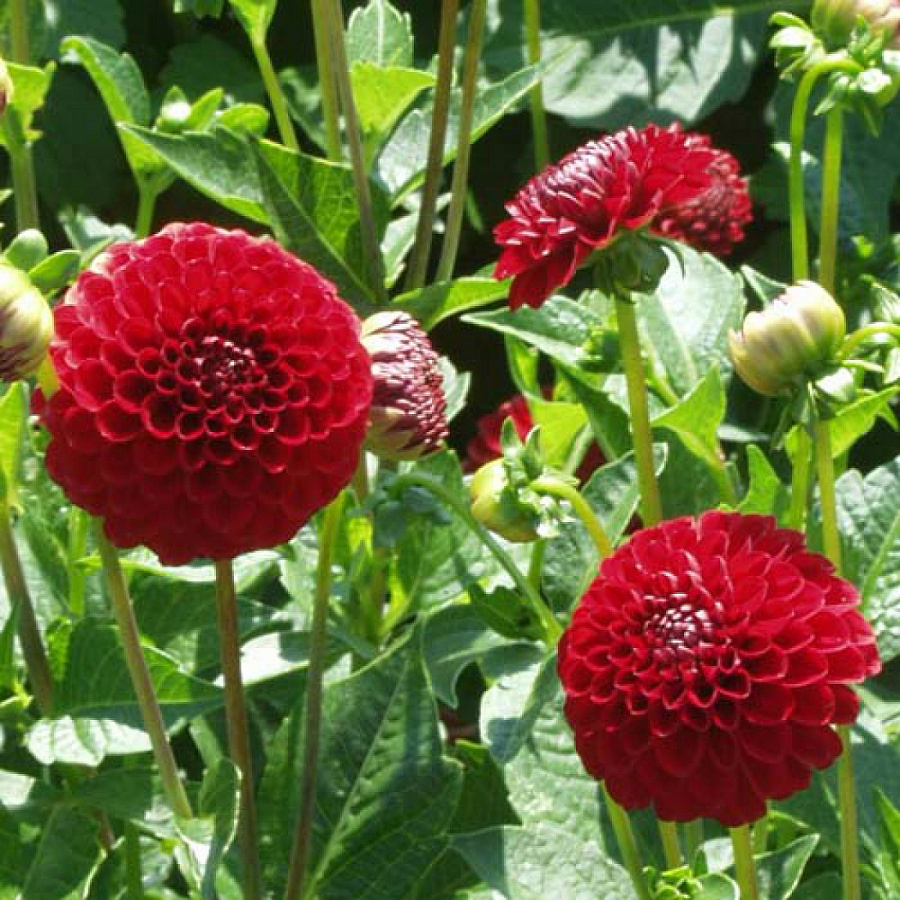 Георгина помпонная несцио - это великолепное растение с красивыми красными цветками, которые радуют глаз своей яркостью и изяществом. Этот сорт георгины отличается высотой до 80 см и размером цветка в 10 см, что делает его прекрасным украшением для вашего сада или огорода. Цветение начинается в июле и продолжается до сентября, принося вам радость и красоту на протяжении всего лета.