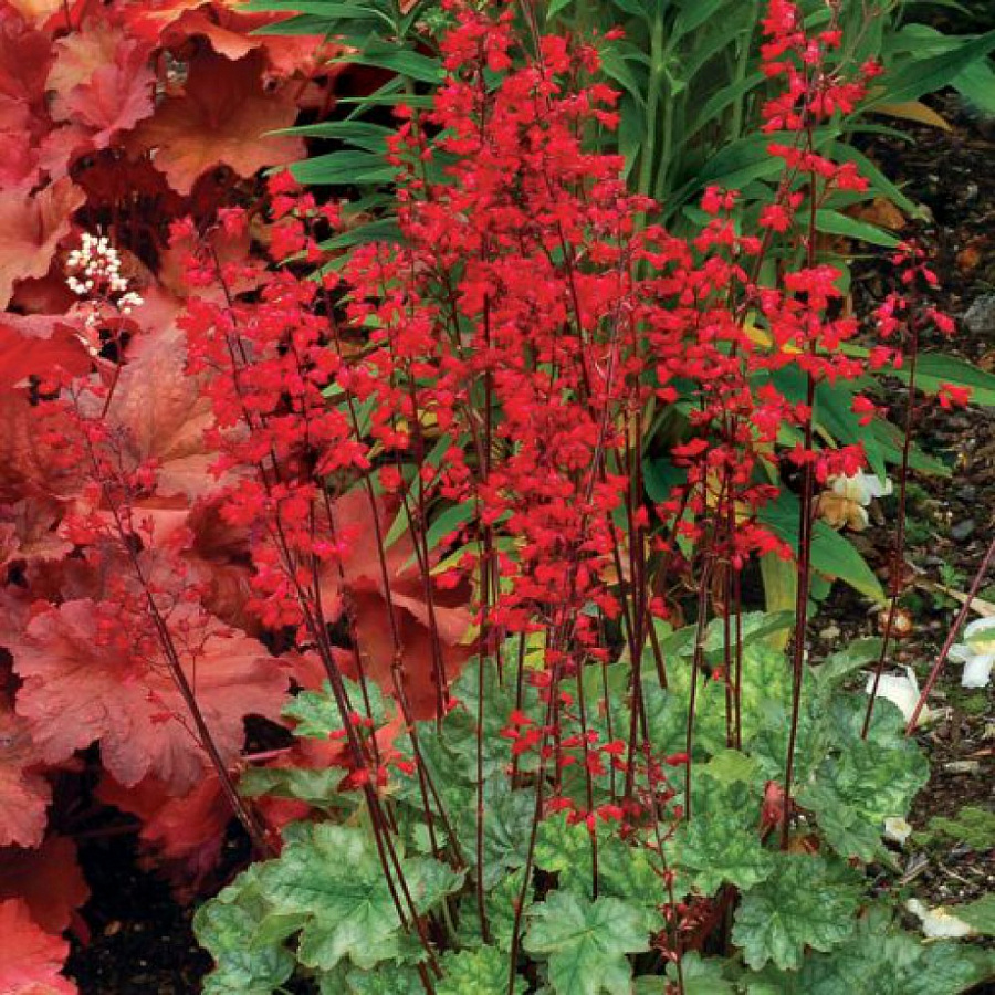 Рассада гейхеры Липстик (Lipstick) станет изящным украшением клумбы, альпийской горки или миксбордера. Многолетник выглядит очень декоративно благодаря удачному сочетанию зеленой листвы и нежных красных цветочков на длинных стеблях. Этот сорт отлично смотрится поодиночке и гармонично сочетается с другими садовыми растениями.