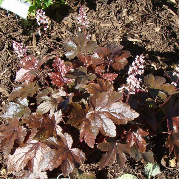 Рассада гейхереллы Барнишед Бронз (Burnished Bronze) украсит ваш сад необычными бронзовыми листьями с глянцевой поверхностью. В конце весны кусты расцветают, выпуская высокие цветоносы с нежными бело-розовыми цветочками. Этот сорт часто используют для декорирования клумб, мест отдыха и каменных горок. Многолетник хорошо смотрится вместе с розами, геранями и другими декоративными растениями. Рассада гейхереллы Барнишед Бронз (Burnished Bronze) предпочитает полутень, но также хорошо переносит участки, открытые солнцу. Поливать растение нужно по мере высыхания земли, не допуская переувлажнения. Раз в 3–4 года куст нужно разделять и пересаживать на новое место.