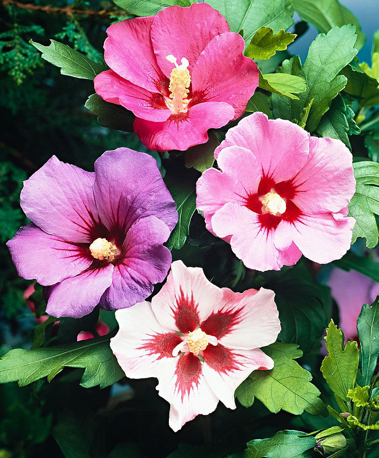 Саженцы гибискуса сирийского Mix позволят вырастить в саду яркие цветы разного оттенка. Это отличный вариант для создания декоративных ограждений, смешанных композиций, украшения зон отдыха. Высота взрослого кустарника достигает 65 сантиметров. Цветение начинается в июне и длится до конца лета. Гибискус сирийский Mix легко адаптируется к любым условиям, он будет одинаково хорошо развиваться на солнце и в тени. Взрослые кусты необходимо регулярно подстригать, чтобы сохранить необходимую форму и омолодить посадку. Кусты неприхотливы в уходе, поэтому их могут смело приобретать начинающие садоводы.