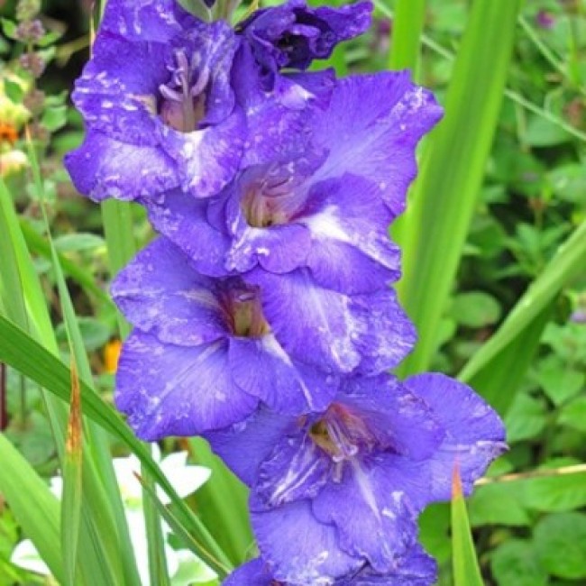 Луковицы гладиолуса гибридного Blue Isle лучше растут на полном солнце, в плодородной и хорошо дренированной почве, в закрытом от сильных ветров месте. Высадка происходит на расстоянии до 35 см друг от друга. В уходе культура неприхотлива. Сорт сильнорослый, может достигать в высоту до 150 см. Соцветия плотные, длинные, состоят из крупных цветов красивой насыщенной сине-фиолетовой окраски с белыми мазками по центру лепестка. Гладиолусы гибридные Blue Isle цветут на протяжении 3-4 недель с июля до сентября. Все это время от соцветий исходит легкий цветочный аромат.