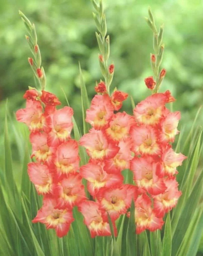 Луковицы гладиолуса крупноцветкового Прага ‒ яркий многолетник для клумб и цветников, а также для среза и составления букетов. Он представлен рослыми кустами, которые достигают до 80‒110 сантиметров в высоту. Гладиолусы предпочитают плодородные, хорошо дренированные почвы и освещенные участки ‒ в таких условиях они вырастают крупными и яркими. На одном цветоносе формируется до 9 бутонов одновременно, за сезон их количество может достигать 25 штук. Они окрашены в нежный лососевый оттенок с плавным переходом к желтому центру. Сорт эффектно выглядит самостоятельно, но также хорошо сочетается с другими цветами.