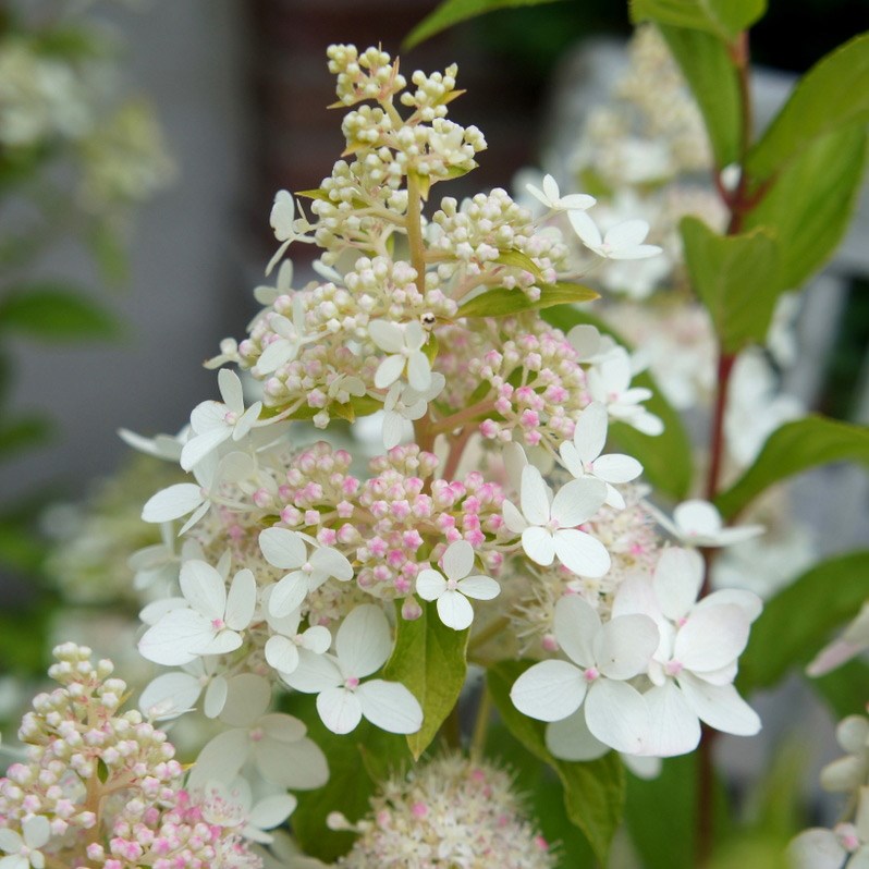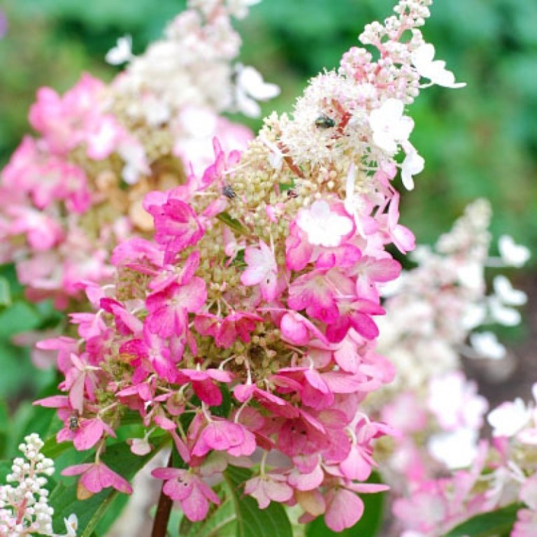 Саженцы гортензии метельчатой сорта Конфетти (Confetti) порадуют неприхотливостью и отличными эстетическими качествами. Пышный кустарник с сочной зеленой листвой выпускает белые соцветия, которые со временем становятся розовыми. Особенности крупномера гортензии Конфетти: ветвистый кустарник разрастается до метра в ширину и в высоту; время цветения – с середины июля до начала октября. Саженцы гортензии Конфетти хорошо приживаются на любой почве. Растение обладает морозоустойчивостью, но при температуре ниже -30 ему потребуется дополнительная защита от замерзания.