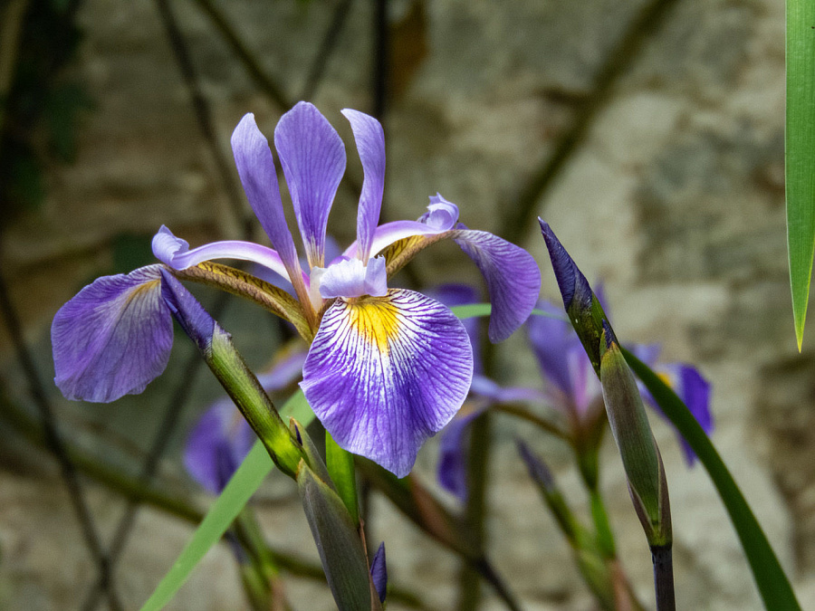 - яркими фиолетово – синими цветками, с желтыми и белыми вкраплениями. Высаживать такие ирисы предпочтительно на затененных участках в количестве от 5 до 9 кустов на метр квадратный, чтобы они дольше радовали своим цветением. Джералд Дарби влаголюбивы, но не любят сильного переувлажнения. Цветок неприхотливый и хорошо разрастается.