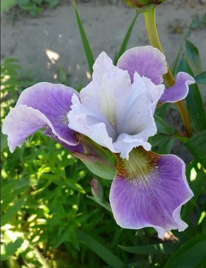 Ирис сибирский "Дэнс Балерина Дэнс" - это настоящая танцующая красавица среди садовых растений. Ее стебель грациозно поднимается до 60 см, а диаметр цветка достигает 40 см, словно вихрь танцует на лепестках. Цветок бело-сиреневой окраски напоминает пышное платье балерины, создавая неповторимую атмосферу в саду.