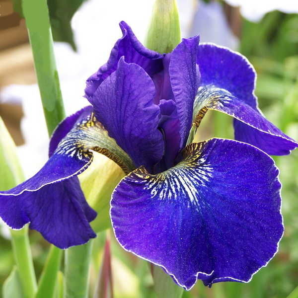 Ирис сибирский Голден Эдж - это великолепное растение, которое поразит вас своей красотой и изысканностью. Его огромные фиолетово-синие цветки с ярким жёлтым кантом по краю фолов создадут неповторимый акцент в вашем саду или огороде. Высота растения может достигать 80-100 см, что делает его заметным и привлекательным элементом ландшафта.