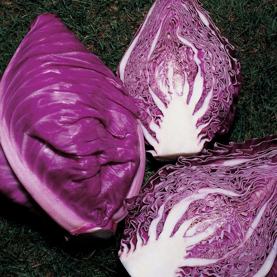 Семена капусты "Калибос" Растение высокое, розетка полувертикальная, диаметром от 50 до 70 см, высотой от 30 до 40 см. Внешний лист широкоэллиптический, вогнутый, окраска темно-красная со средним восковым налетом. На разрезе цвет красно-фиолетовой. Кочан конусовидный, высотой от 25 до 35 см, среднеплотный, частично прикрытый. Масса плодов 1,8-2,5 кг. Внутренняя кочерыга в длину достигает 15-20 см. Вкус плодов сладкий, консистенция нежная, сочная. Рекомендован сорт семян капусты "Калибос" для использования в свежем виде и квашения.