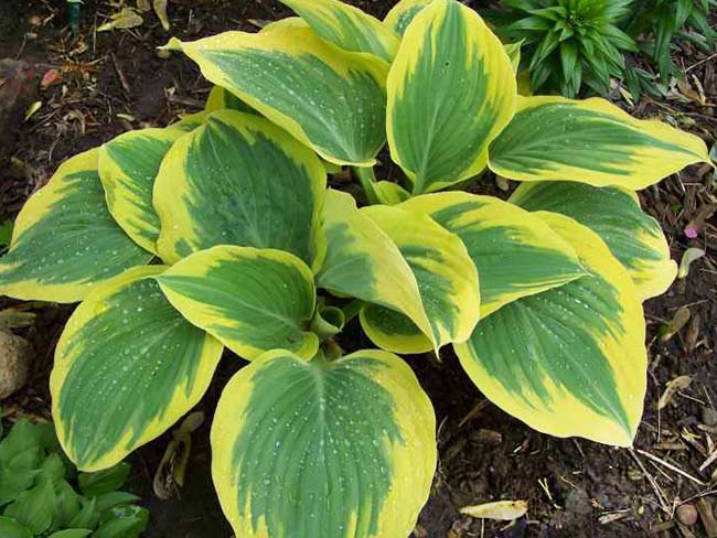 Летняя окраска листвы : сизая середина листа с неоново-желтым кантом