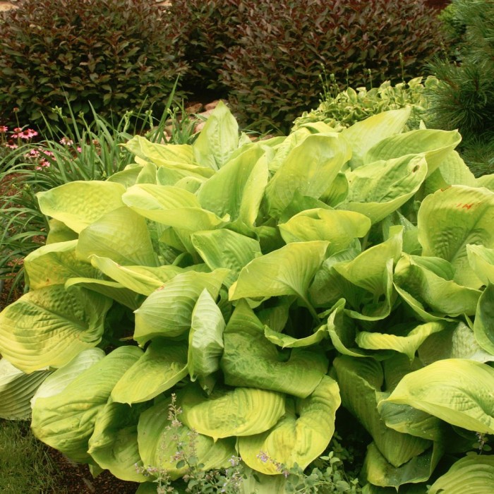- Взрослый куст хосты Сам энд сабстенс потребует достаточно много места в саду.