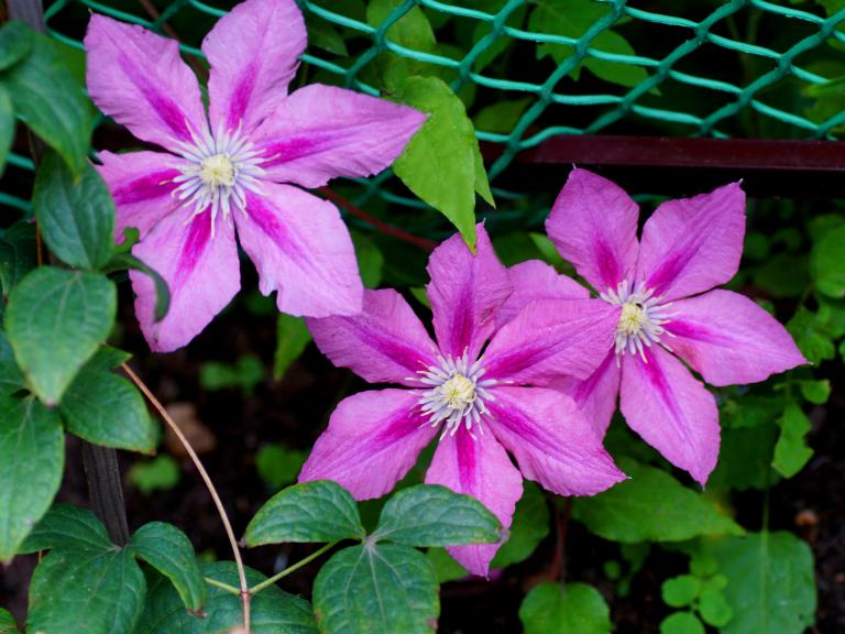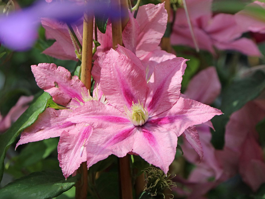 Клематис гибридный Розамунде (Rosamunde) достигает высоты 100-150 см, используется для декорирования и оформления небольших садовых опор, в сочетании с карликовыми деревьями, миниатюрными кустарниками и полукустарниками.