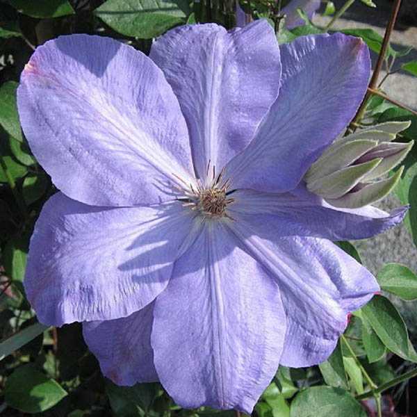 Окраска цветка : Цветки крупные, светло-лавандово-голубые с лиловым оттенком, временами полумахровые, тычинки светло-коричневые.