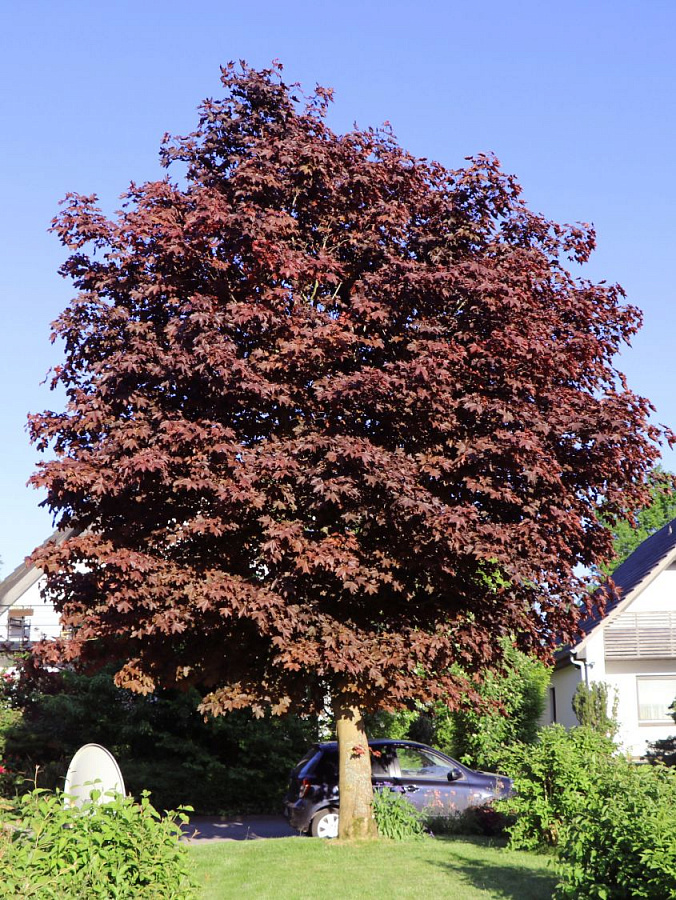 Клен остролистный фассен блек - это удивительное растение, которое поразит вас своей красотой и изяществом. Его ствол грациозно поднимается к небу, достигая высоты до 4 метров, а диаметр кроны может достигать 2 метров. Листья клена остролистного фассен блек имеют ярко-красную окраску весной, темно-пурпурную летом и красно-зеленую осенью, создавая неповторимый колорит.