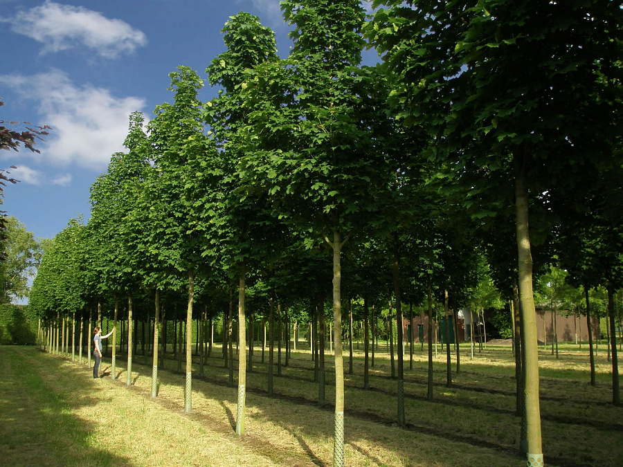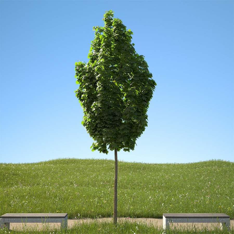 Саженцы Клёна остролистного Колумнаре (Columnare) – крупное дерево, высота которого достигает 16 метров, с раскидистой клиновидной кроной. Молодые листья красного оттенка, к лету становятся насыщенно-зеленого, а к осени обретают насыщенно-желтый оттенок с багряными разводами. Цветение происходит в апреле, мае: распускаются белые цветы, которые смотрятся невероятно декоративно. Плоды появляются к началу осени и представляют собой коричневую двукрылку. Клён остролистного Колумнаре лучше высаживать на хорошо увлажненной, плодородной почве, которую стоит дренировать. Не терпит и чрезмерное количество воды, поэтому высоко залегающих грунтовых вод стоит избегать.
