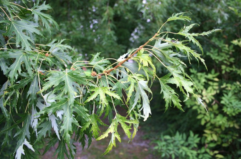 Саженцы клёна серебристого (Acer saccharinum) хорошо приживаются, гарантировано — если брать их с большим комом земли в мешковине. Родина — северная Америка. Верхняя часть листа светло-зелёная, нижняя — серебристо-белая, с сизым оттенком. Достигает в высоту до 30 метров и выше, быстрый рост, большая, раскидистая крона, срок жизни — до 130 лет и больше. Хорошая морозоустойчивость — до минус 40 °C. Светолюбив, хорошо переносит паводковые затопления. Возможна покупка и посадка в виде крупномера.