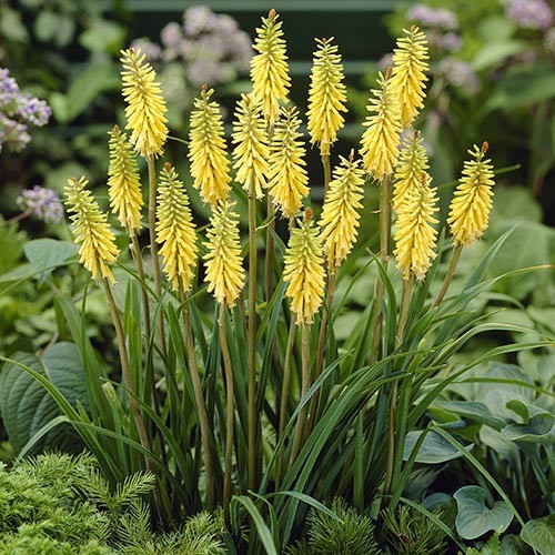 Рассада книфофии ягодной Vanila (Ваниль) принадлежит к семейству многолетников, устойчивым к вредителям и болезням. С весны до конца теплого сезона формируется в огромный, цветущий в середине июля травяной куст (похожий на осоку). Листы узкие мечевидные до 1-2 м длиной, соцветия собраны в высокий колос с мелкими колокольчатыми желтыми цветами с семенами. Любит частый обильный полив без застоя. Требует пересадки в тепло на зимний период.