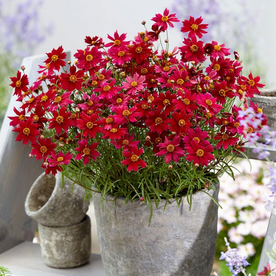 Рассада кореопсиса розового Bloomsation dragon позволит украсить сад эффектным многолетником, не требующим сложного ухода. Это растение представляет собой куст высотой до 40 сантиметров, на котором летом появляются красивые цветы с желтыми серединками и красными лепестками. Цветение продолжается до конца августа. Кореопсис розовый Bloomsation dragon предпочитает легкую плодородную почву. Место размещения должно хорошо освещаться солнцем. Землю следует предварительно дренировать, чтобы избежать скопления воды. Этот сорт не привлекает вредителей и не болеет.