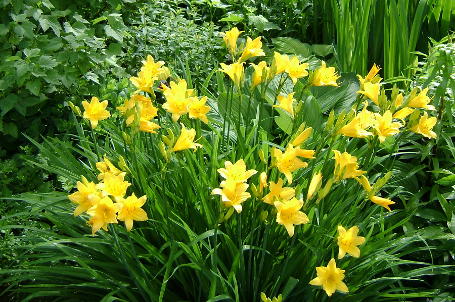 Лилейник гибридный Бен Бэхман (Ben Bachman) – многолетнее травянистое растение с необычной формой цветка. Лепестки курчавые, вьющиеся насыщенного желтого цвета в сочетании с зеленым горлом. Соцветия крупные в диаметре достигают 18 см. Высота взрослого куста 70 см. Период цветения июль, август. Саженцы лилейника предпочитают солнечные места с плодородной, водопроницаемой почвой. Прекрасно сочетаются с хвойными насаждениями.
