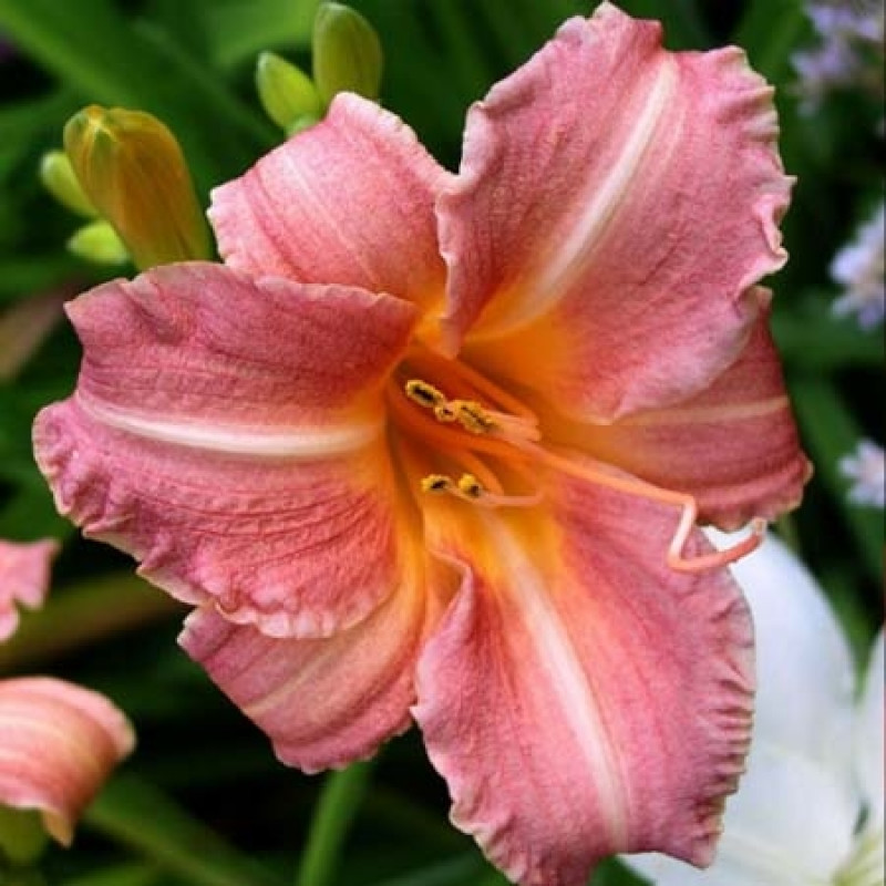 Окраска цветка : Лососево-розовая с жёлтым горлом