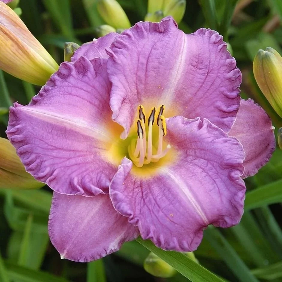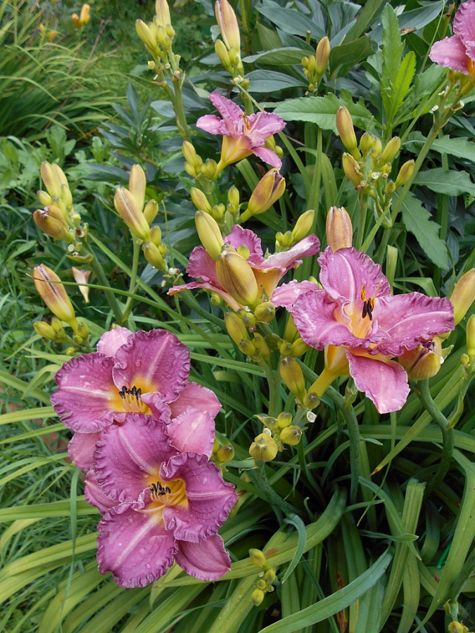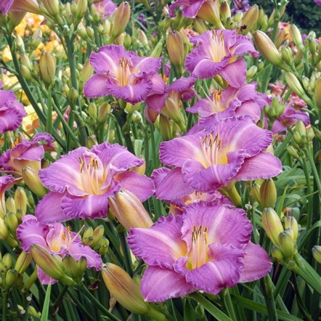 Рассада лилейника Интрэпмэент (Entrapment) – растение, характеризующееся обильным и продолжительным периодом цветения. В высоту он достигает 66 см, а цветки крупные до 15 см. Цветы появляются примерно в начале августа, они голубовато-пурпурные с гофрированными краями. Только обилие солнца сделает красоту этого цветка по-настоящему неповторимой. Сажать его лучше с весны по осень в зависимости от климата. А для последующей усадки уйдет около 1 месяца. Лилейник не требует постоянного полива, только в условиях сильной засухи. Для сада цветы могут использоваться для одиночной высадки или как групповые растения.