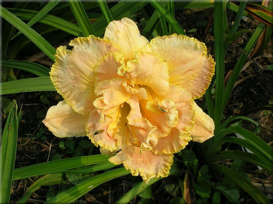 Рассада лилейника Нейчерс Краун (Nature's Crown) выделяется своими крупными махровыми цветами, источающими непревзойденный аромат. Оттенок цветка сливочный с розовыми вкраплениями и зеленой сердцевиной. по краям лепестки рифленые и имеют узкую золотистую кайму. Лилейник зацветает повторно в начале сентября. Лучше всего сажать рассаду в мае или в августе. Для этого сорта потребуется выбрать участок с хорошим освещением, чтобы он был ровным и без лишнего увлажнения. Для начала подготавливается посадочная яма диаметром 50 см и глубиной примерно 40 см, в неё добавляется питательная торфяная смесь и фосфорно-калийные удобрения.