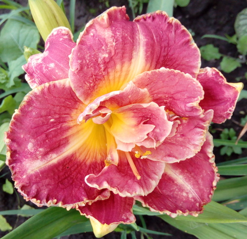 • Окраска цветка : Розовая с зелёным горлом и жёлтой каймой