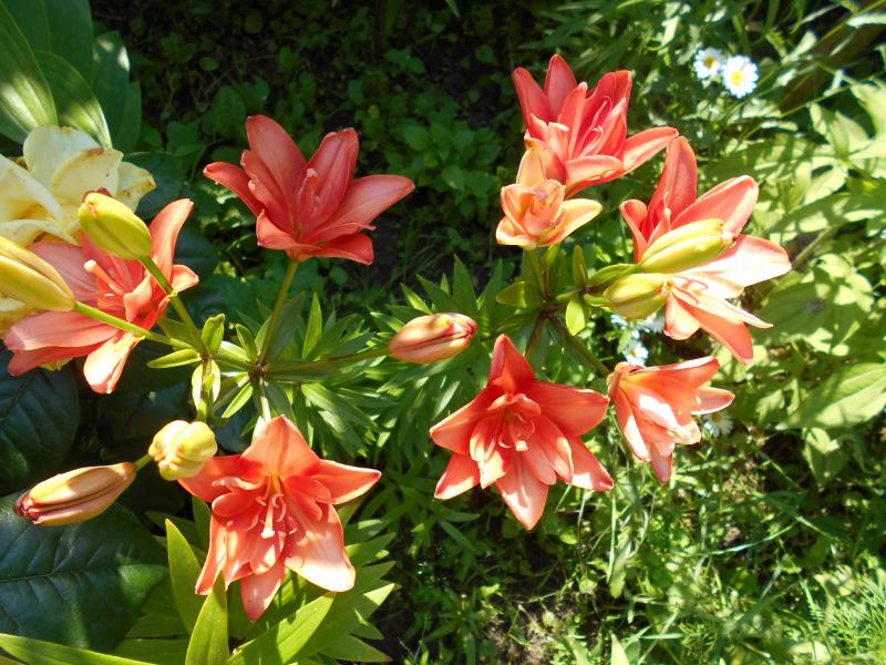 Окраска цветка : яркие оранжево-красные лепестки без крапа