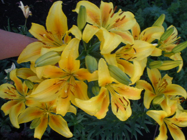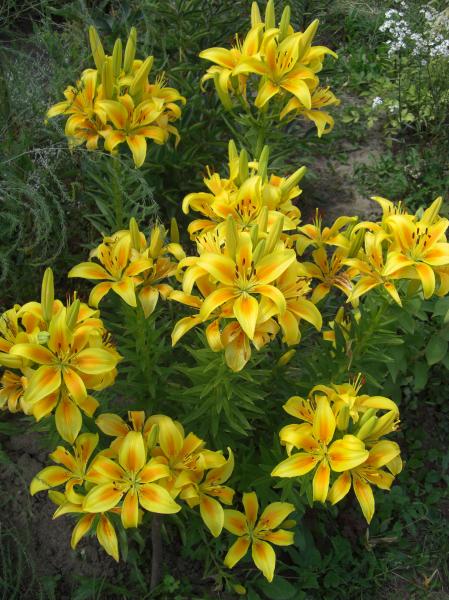 Саженцы лилии азиатской Поллианна (Lilium asiatic Pollyanna) подарят наслаждение даже самому искушенному садоводу, расцветая интенсивно-желтыми цветами с оранжевыми полосами и коричневым крапом. Цветы могут быть одиночными или собраны в соцветия по 3-5 бутонов. Листья растения насыщенного зеленого цвета, плотные. Это растение подходит для групповых посадок, на клумбах или на срез.