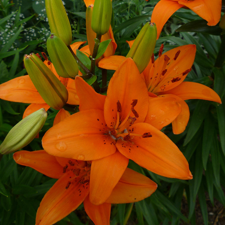 Луковицы азиатской гибридной лилии Трезор (Lilium asiatic hybrid Tresor) привлекают внимание цветоводов яркой окраской. Стебли вырастают до 0,9-1 м в высоту. Диаметр цветков достигает 17 см. Окраска ярко-оранжевая, ближе к центру коричневый крап. Пыльники шоколадные, заметные. Период цветения – июнь и июль. Бутоны гармонируют с темно-зеленой листвой. Лилия хорошо развивается на плодородных, рыхлых почвах. Предпочитает солнце или полутень. Желательно прикрывать от палящих полуденных лучей, под ними цветки быстрее увядают. Сорт в групповых посадках делает огненные акценты. Подходит на срезку.