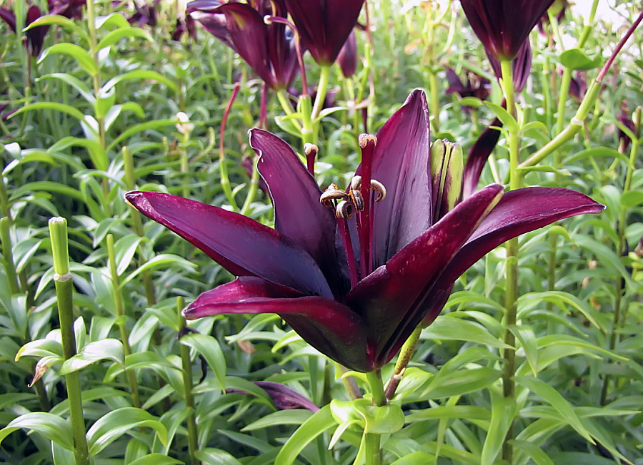 Луковицы лилии Landini стоит высаживать тем, кто предпочитает экзотические растения на своем участке. Данный сорт отличается от других темной окраской длинных лепестков. Цветы темно-фиолетовые, красиво переливаются на солнце. Зацветает культура через 80-90 дней после посадки. Цветет все лето. Высота растения составляет 90-120 см. Растут лилии Landini лучше всего на хорошо освещенных или частично затененных участках, в легкой, дренированной, слегка влажной почве. Высаживать луковицы следует на расстоянии до 25 см друг от друга.