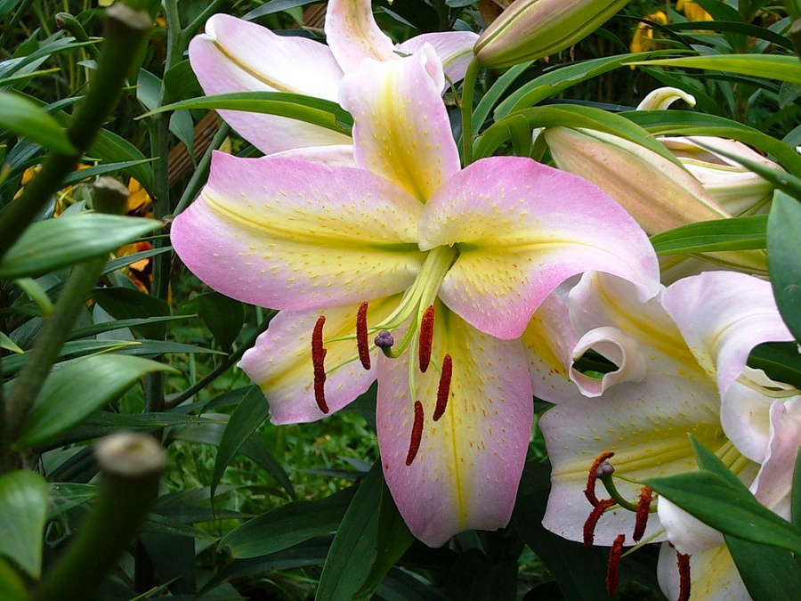 Саженцы и рассада Лилии восточной Кзотико (Lilium oriental hybrids Xotica) – весьма большие светло-лиловые цветы с мягко-желтой полосой по середине волнистого лепестка. Высота растения 70-90 см, в цветоносе находится 6-9 цветов.