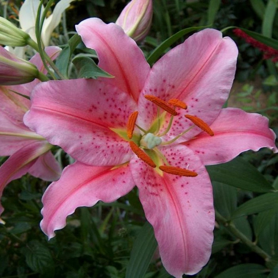 Саженцы и рассада лилии восточной Ломбардия (Lilium) предназначены для выращивания на клумбах и на срез. Отличается крупными цветками нежно-розового конфетного оттенка с дымкой. Светло-зеленое основание центра лепестков и нежный незначительный крап внутри чаши добавляют изюминку сорту. Аромат очень сильный, насыщенный.