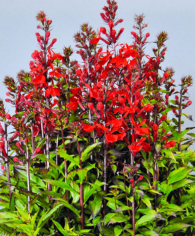 Это растение достигает высоты 50-60 см, имеет пурпурно-бронзовую окраску листвы и крупные красные цветки. Листья лобелии имеют интересную форму, что делает ее еще более привлекательной для глаз.