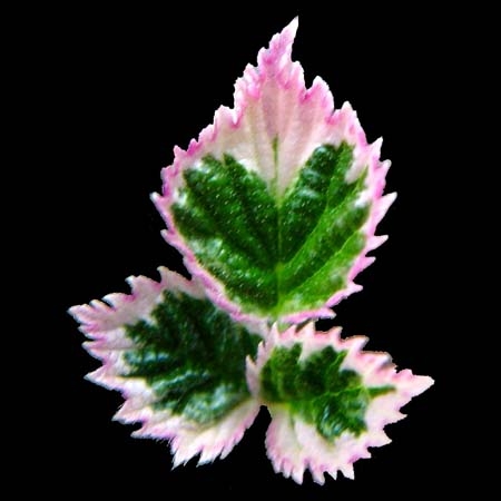 Саженцы Малины мелколистной Вариегата (Variegatus) – пышный кустарник, с раскидистыми веточками. Растение имеет маленькие листочки, которые выглядят рельефными за счёт глубины прожилок. Весной и летом цвет они зелёные, а кончики обрамлены белым цветом.